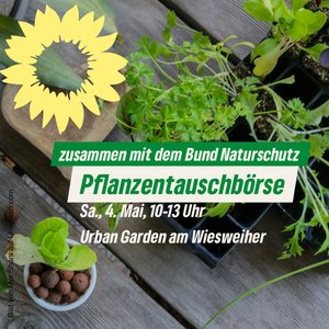 Bring am 04.05.2024 deine Gemüse-Pflänzchen, Blümchen, Kräuter, Zimmerpflanzen, Ableger, Kakteen, Büsche, was bei Dir zu viel ist und tausche ein gegen andere Sorten und Arten- alles ohne Gebühren oder sonstige Kosten! Wir freuen uns auf die gemeinsame Aktion mit dem Bund Naturschutz und allen, die mit dazu kommen!